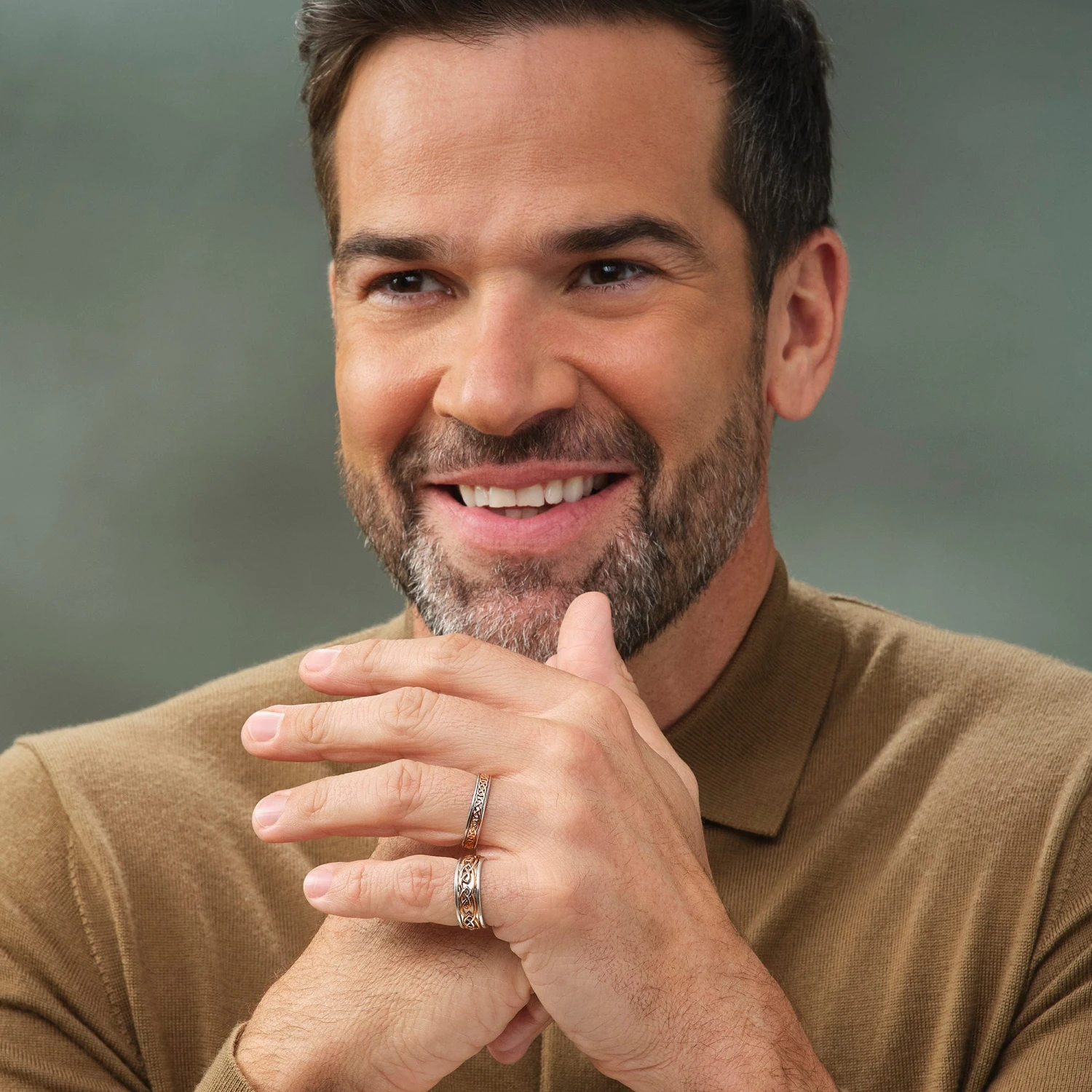 The Welsh word “annwyl” (“dear”) has its roots firmly established in the nation’s cultural heritage. Our Annwyl Silver Slim Channel Ring is influenced by the Celts’ love for endlessly interweaving patterns, and features an elegant sterling silver channel band through which flows a 9ct rose gold pattern. Perfect as a traditional wedding band, or worn as a symbol of national pride.