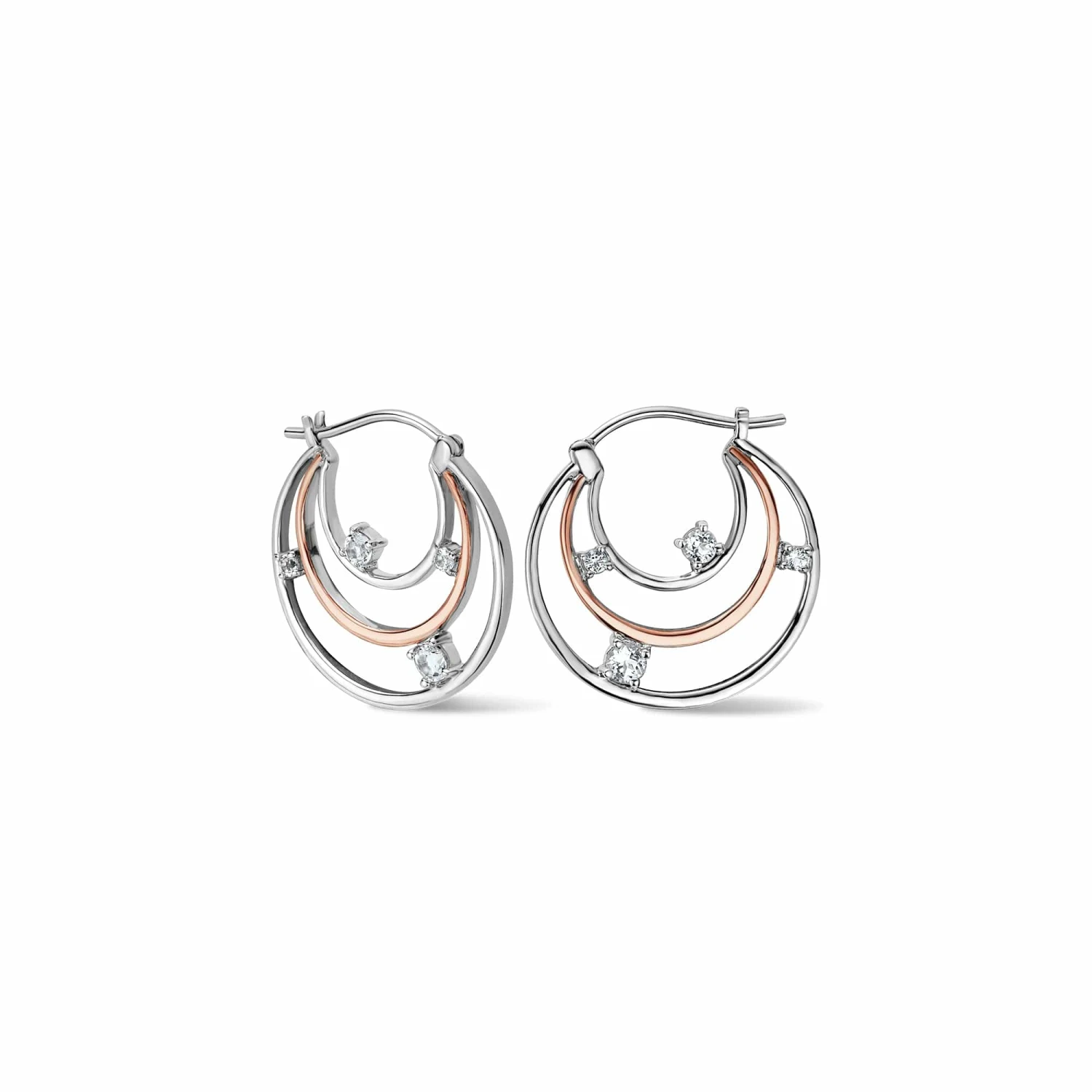 Perfect for the stargazer in your life, our Awyr Y Nos Silver Hoop Earrings feature rings of sterling silver and 9ct rose gold tracing the orbits of genuine round faceted white topaz gemstone planets. Named after the Welsh for “night sky”, these heavenly earrings will be the shining star of any outfit.
