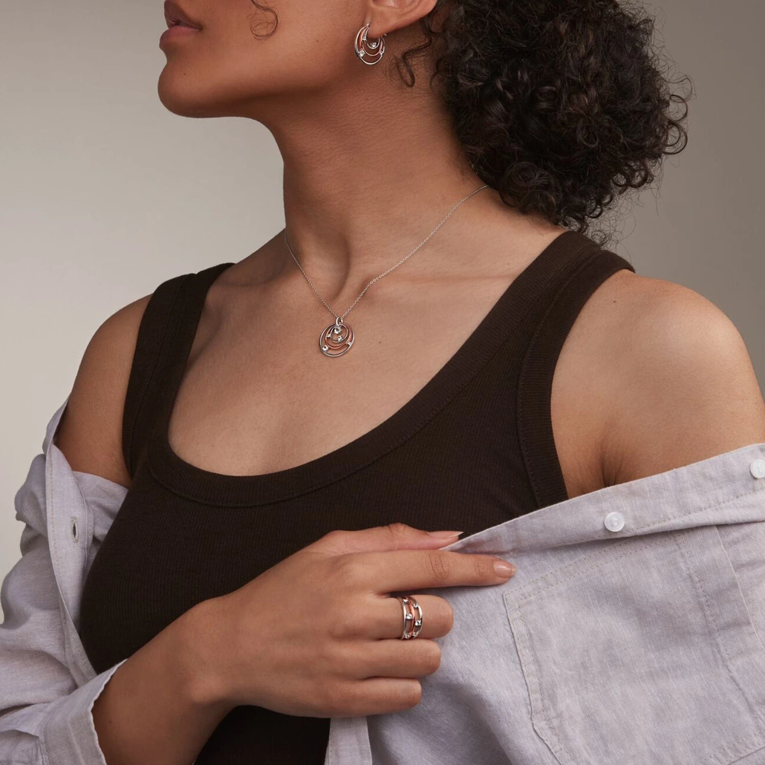 Perfect for the stargazer in your life, our Awyr Y Nos Silver Ring features bands of sterling silver and 9ct rose gold tracing the orbits of genuine round faceted white topaz gemstone planets. Named after the Welsh for “night sky”, this heavenly ring will be the shining star of any outfit.