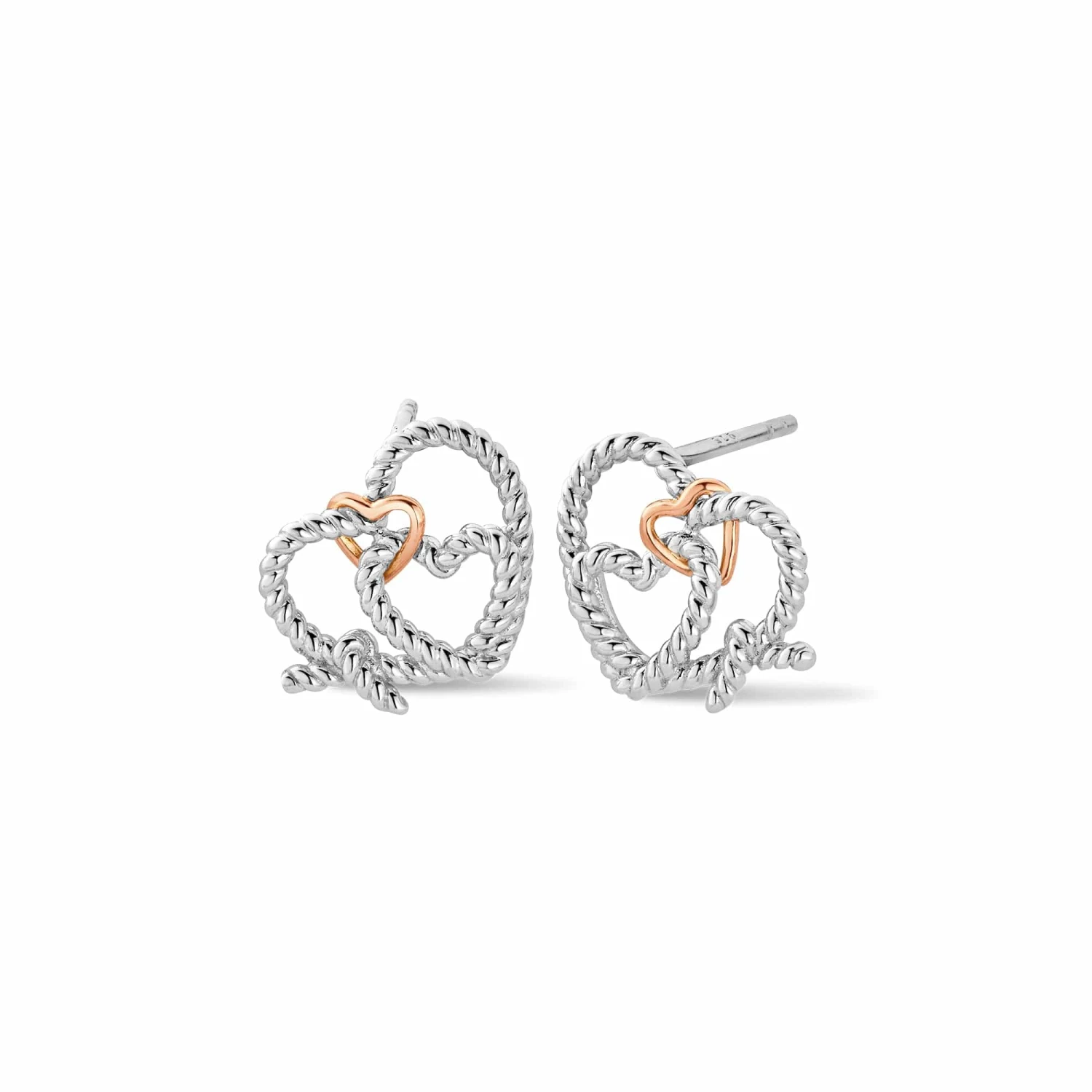 Our Bound Forever Silver Stud Earrings bring to life an ancient Celtic tradition in which a priest bound together the wrists of two sweethearts with a cord, symbolising devotion and commitment. The beautiful earrings present sterling silver heart-shaped braids tied with a 9ct rose gold heart, signifying a bond of love that can’t be parted.