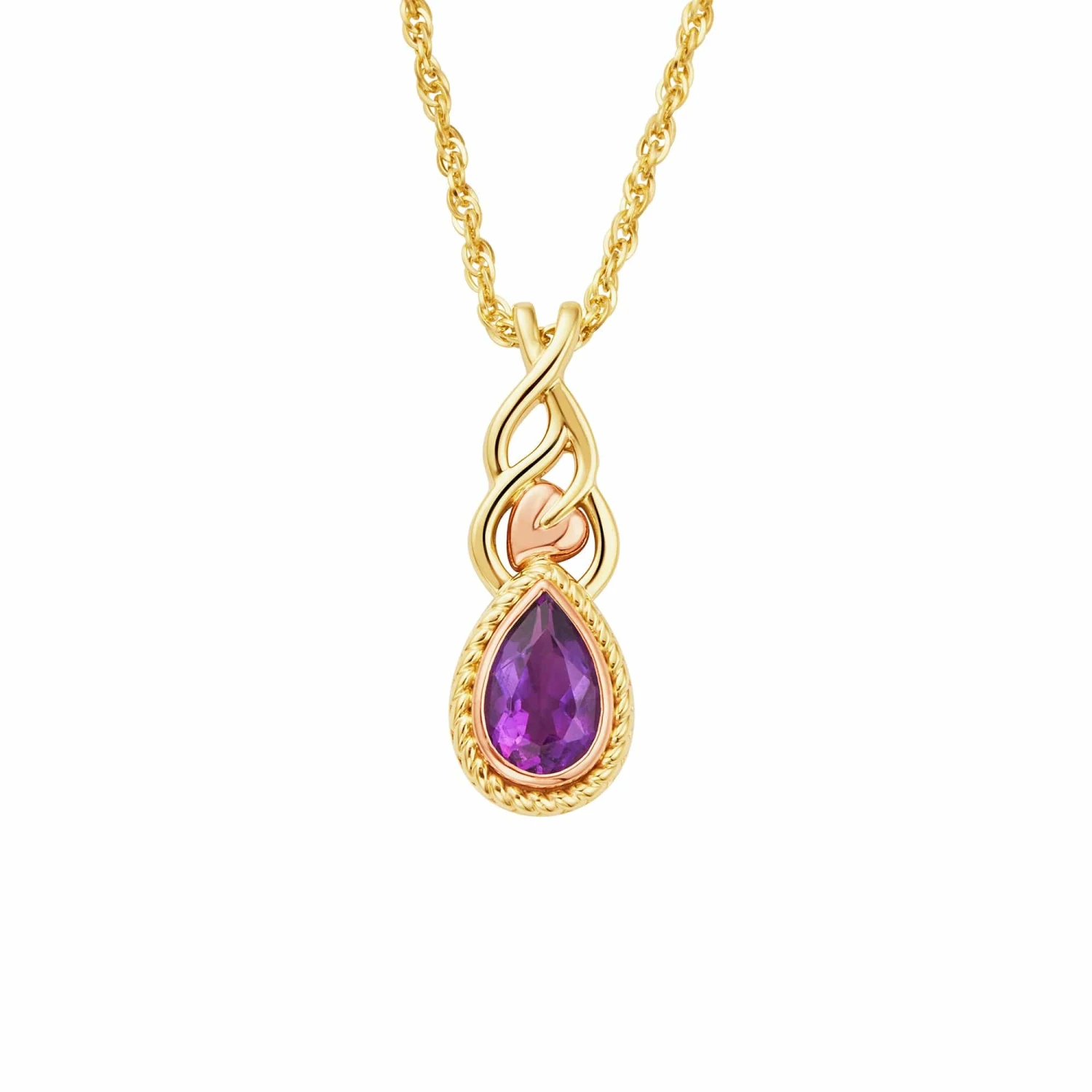 Our Delphinium Gold and Amethyst Pendant was introduced to mark the historic coronation of King Charles III and is inspired by The King’s favourite flower represented with a richly coloured purple amethyst gemstone. This gorgeous centrepiece blooms within a regal 9ct yellow gold setting of intertwining vines tipped with our signature leaf motif detailed in 9ct rose gold.