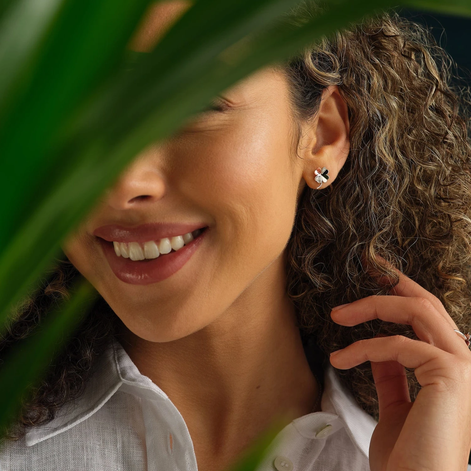 Everyone needs a little good fortune from time to time. Give fate a nudge in the right direction with our fun interpretation of the classic Celtic four-leaf clover, named after the Welsh for “good luck”. The Pob Lwc Silver Stud Earrings feature charming flowers with petals of sterling silver and 9ct rose gold – plus a pop of white topaz just for luck!
