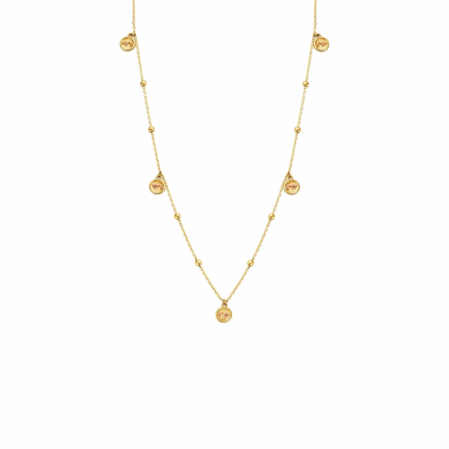 A contemporary take on our classic Tree of Life® collection, the Tree of Life® Insignia Gold Drop Necklace features a dainty 9ct yellow gold bead chain adorned with circular motifs bearing our signature leaf – signifying creation, growth and renewal – detailed in 9ct rose gold.