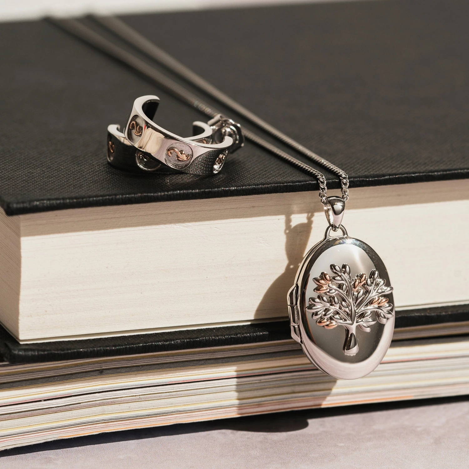 Our Tree of Life® Insignia collection plucks the pretty heart-shaped leaf from the folklore symbol of creation and renewal to create subtle designs with an uplifting meaning. The Tree of Life® Insignia Silver Half-Hoop Earrings feature classic hoops of sterling silver adorned with our signature leaf motif in warm 9ct rose gold, held securely by post-and-butterfly fastenings.