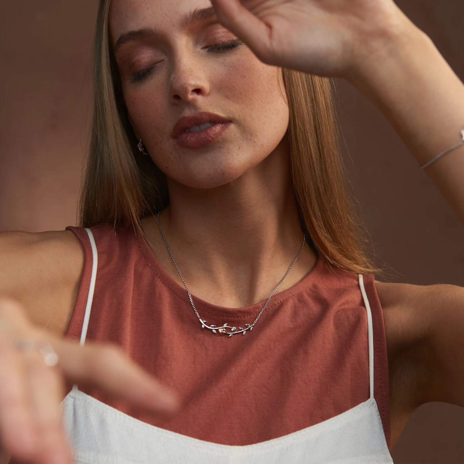 The Tree of Life symbolises creation, renewal and an endless desire to overcome any obstacle in order to thrive. Carry a timeless reminder of those inspiring sentiments with our elegant Vine of Life Silver Necklace, which presents the signature Tree of LifeĀ® motif in sterling silver with a warm 9ct rose gold leaf detail and flashes of sparkling white topaz.Ā
