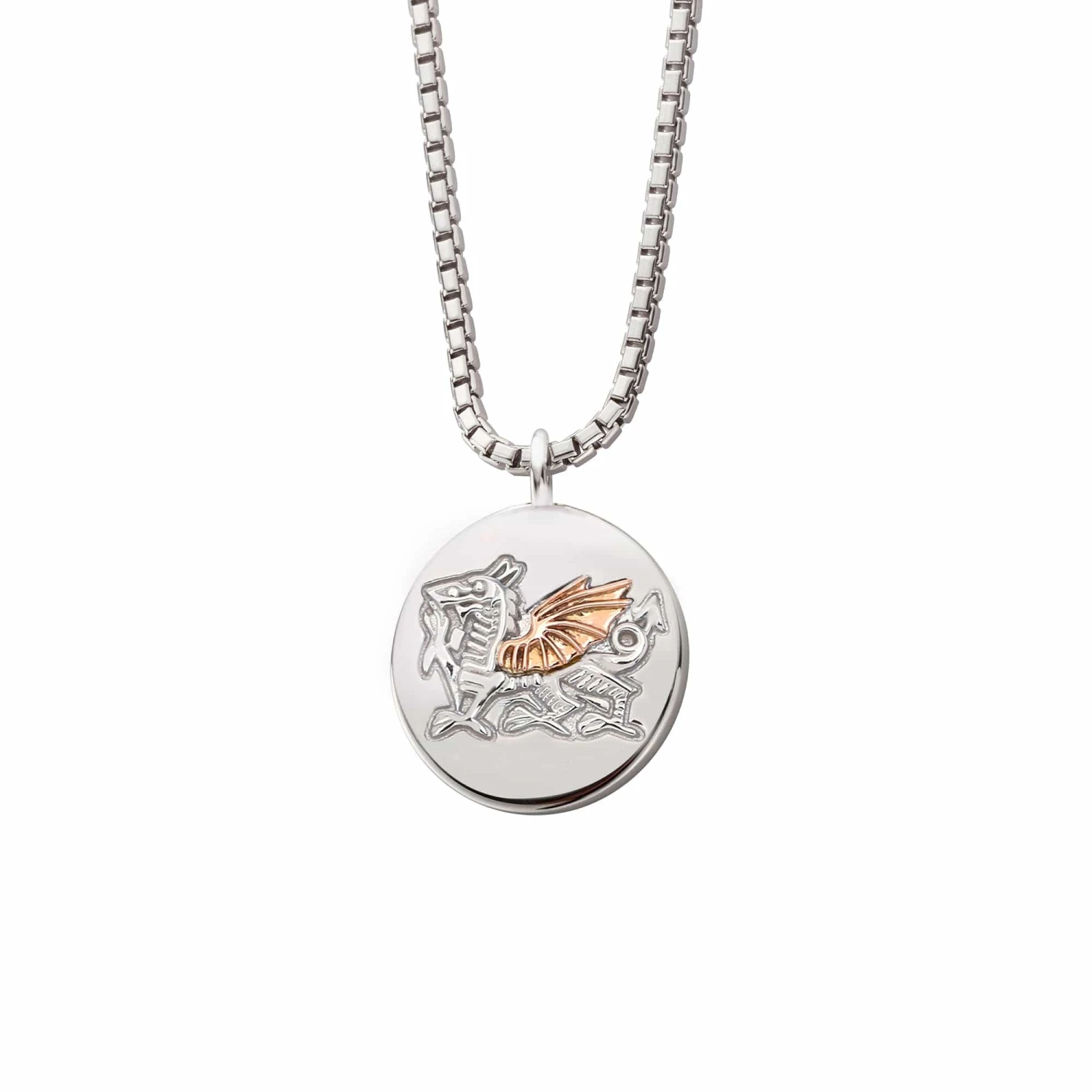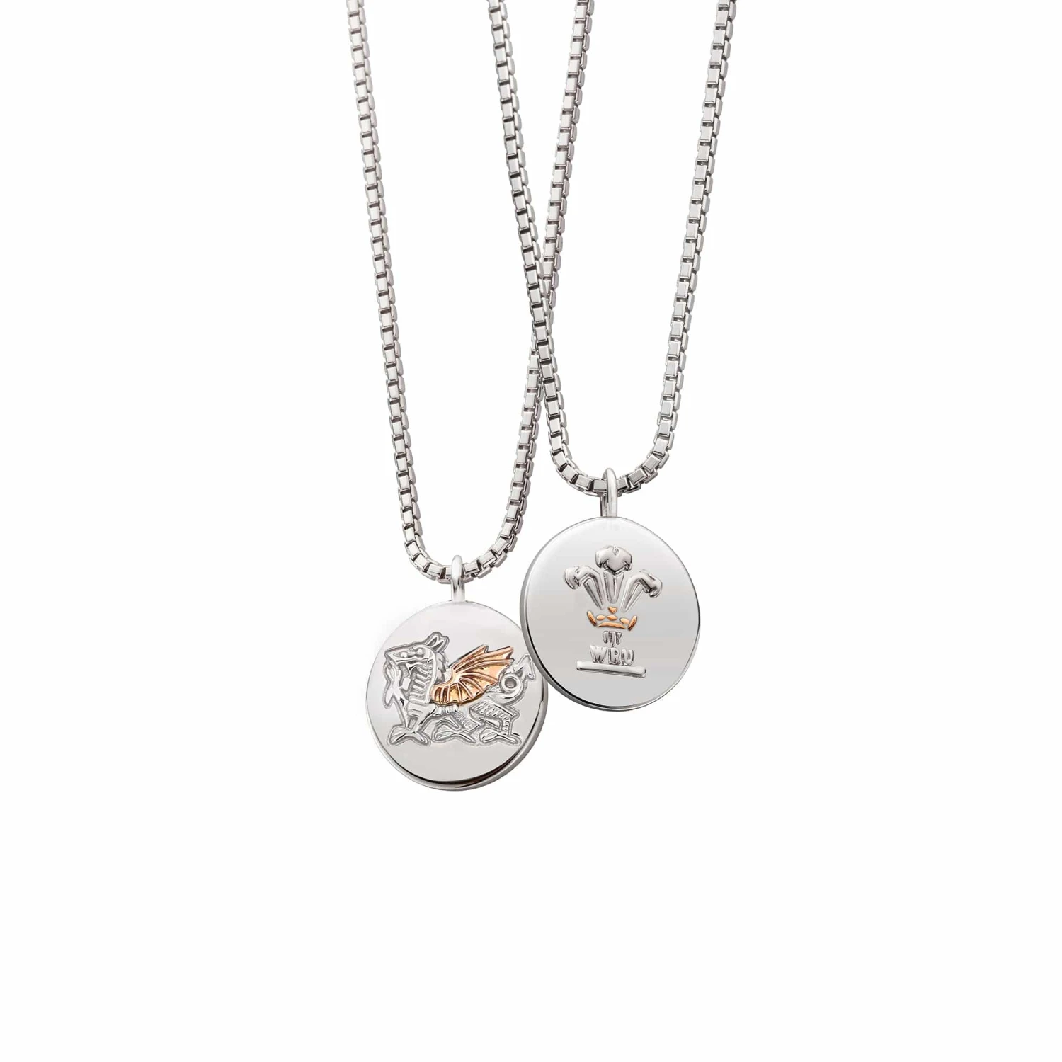 Show your passion and pride for the heroes of the Welsh national men’s and women’s rugby teams with our official WRU Welsh Dragon Silver Pendant, created in partnership with the Welsh Rugby Union. One side of the sterling silver and 9ct rose gold pendant carries the WRU’s famous Prince of Wales feathers logo, while the reverse bears “Y Ddraig Goch” (“the red dragon”). This quintessentially Welsh gift is the ideal celebration of our cultural heritage.